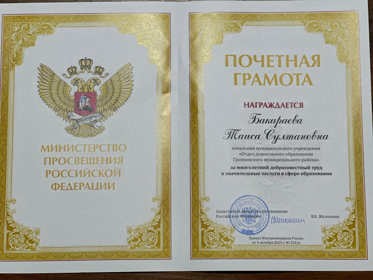 Уважаемая Таиса Султановна! Коллектив Муниципального учреждения «Отдел дошкольного образования Грозненского муниципального района» и подведомственные учреждения дошкольного образования Грозненского муниципального района, поздравляем Вас с ...